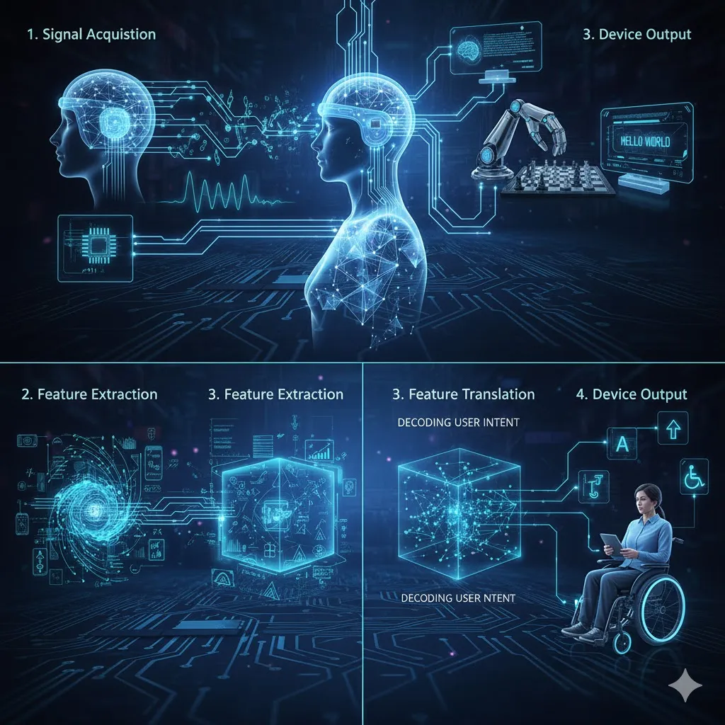 1. Signal Acquisition: Sensors record raw electrical activity.